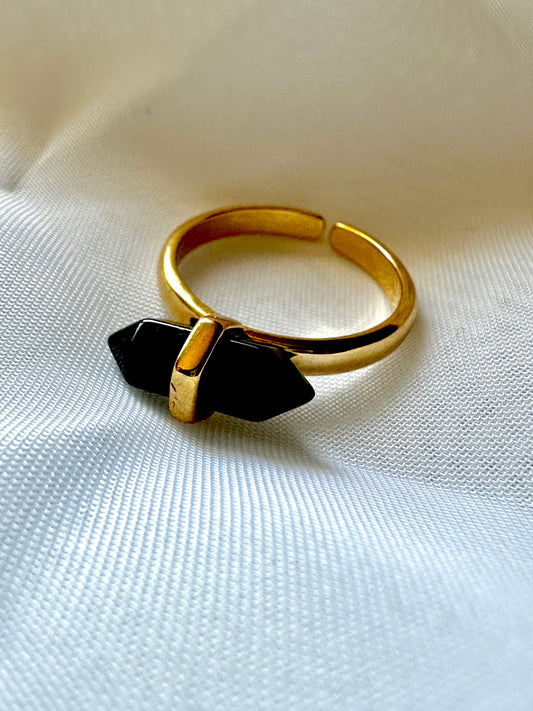 14K Gold Filled Natural Onyx Gemstone Pointed Wand Ring
