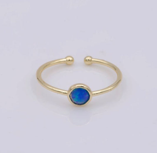 Dainty 18K Gold Filled Round Blue Opal Stone Adjustable Ring, Stacking Ring