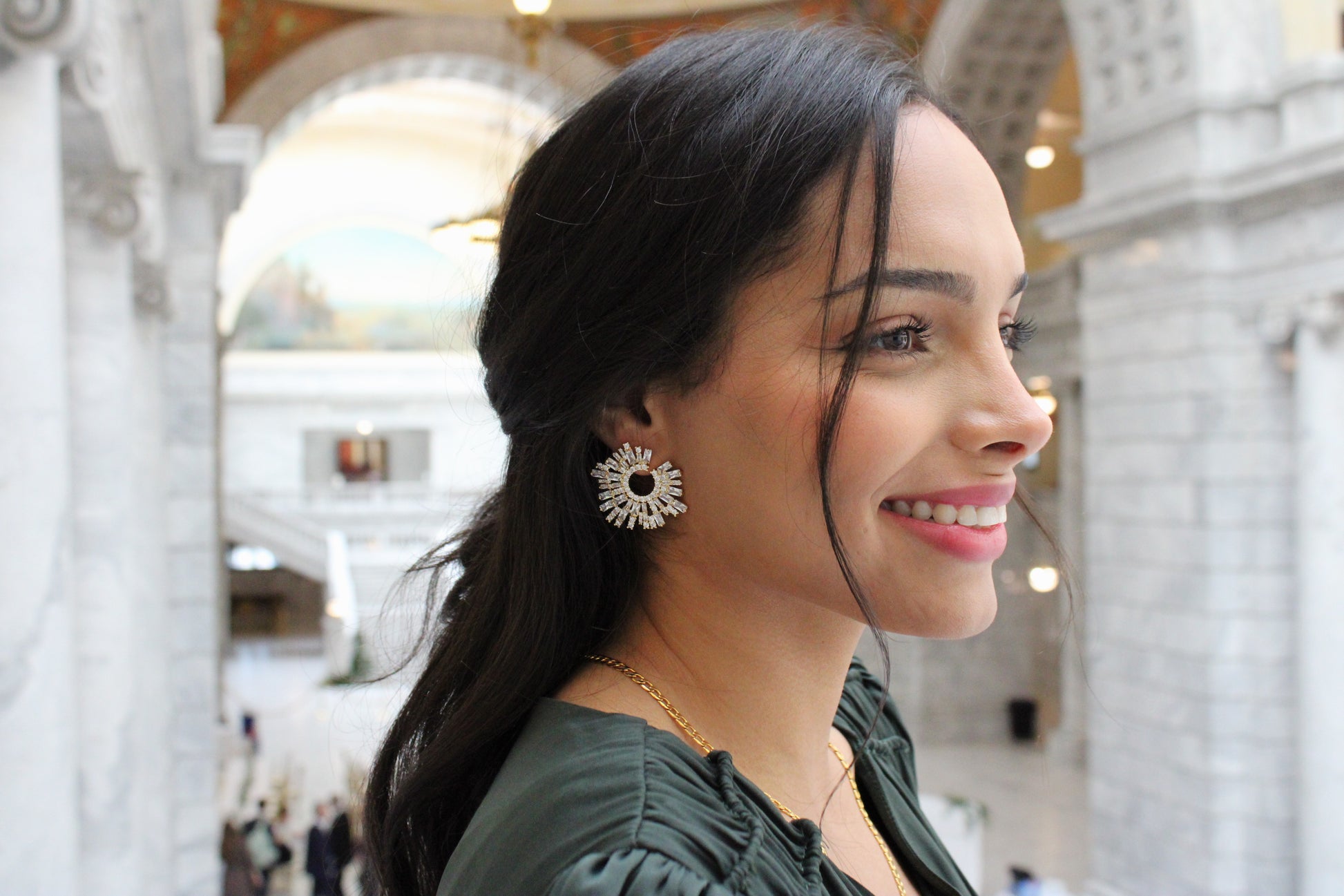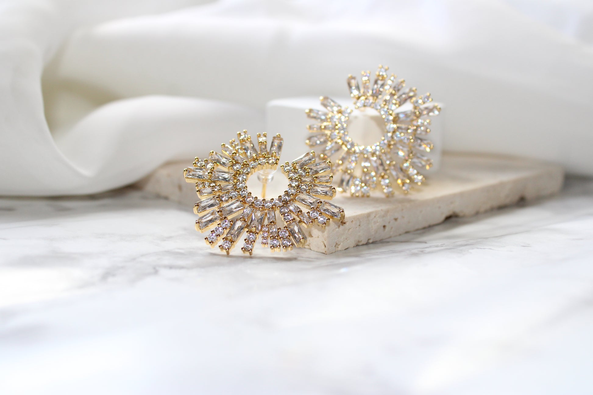 24K Gold Filled Tapered Baguette Sunburst Cubic Zirconia Stu
