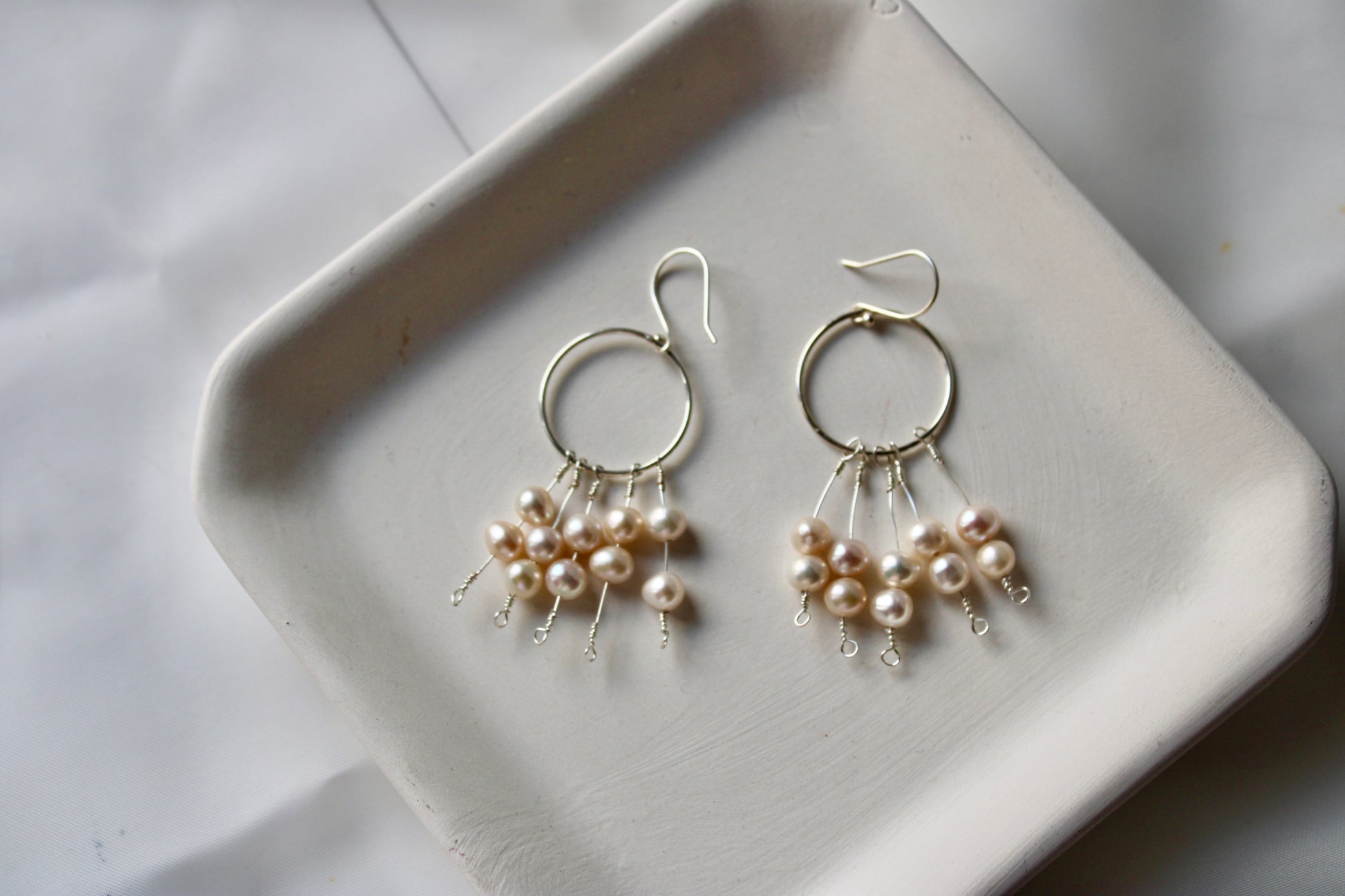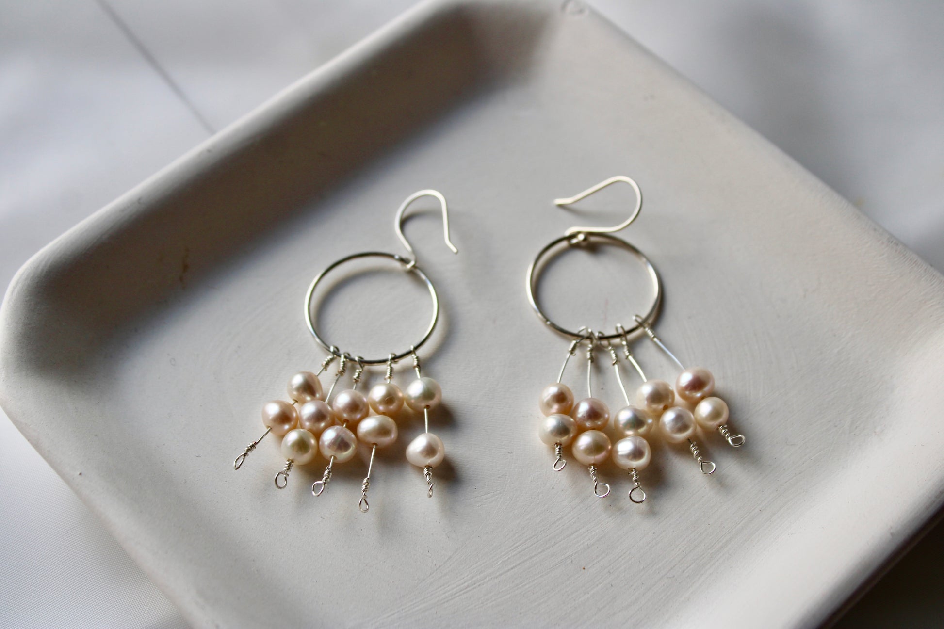 Hoop Earrings, Sterling Silver plated or Gold Plated wire with real cultured pearls.