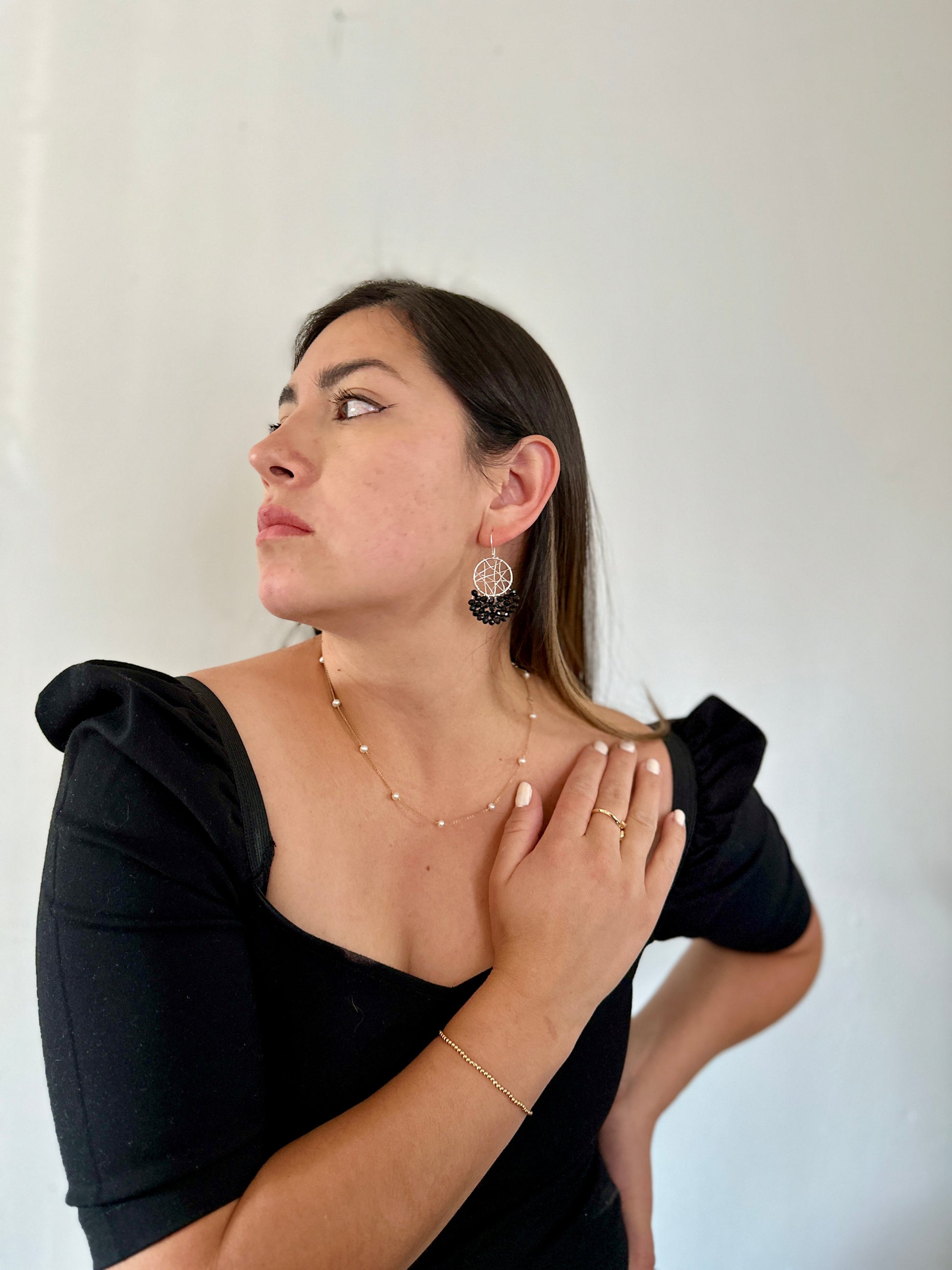 Sterling Silver plated Hoops wire Wrapped with Black Crytals, murano crystals.