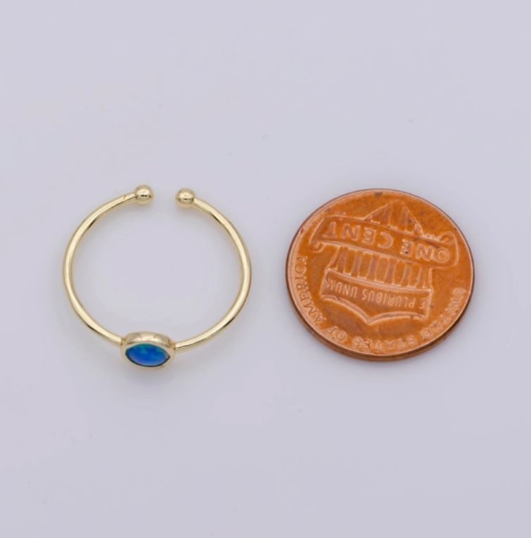 Dainty 18K Gold Filled Round Blue Opal Stone Adjustable Ring, Stacking Ring