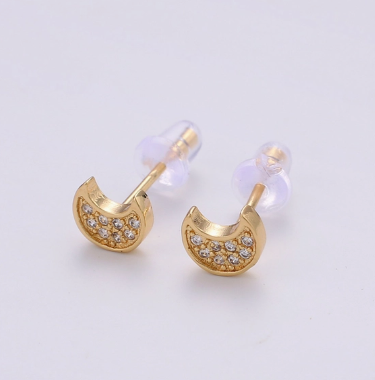 Moon Stud Earrings are delicate accessories that feature a small simplistic depiction of a crescent moon. Is Crafted in 24k Gold Filled. These earrings can be worn as everyday jewelry, adding a subtle touch of celestial symbolism to any outfit.
