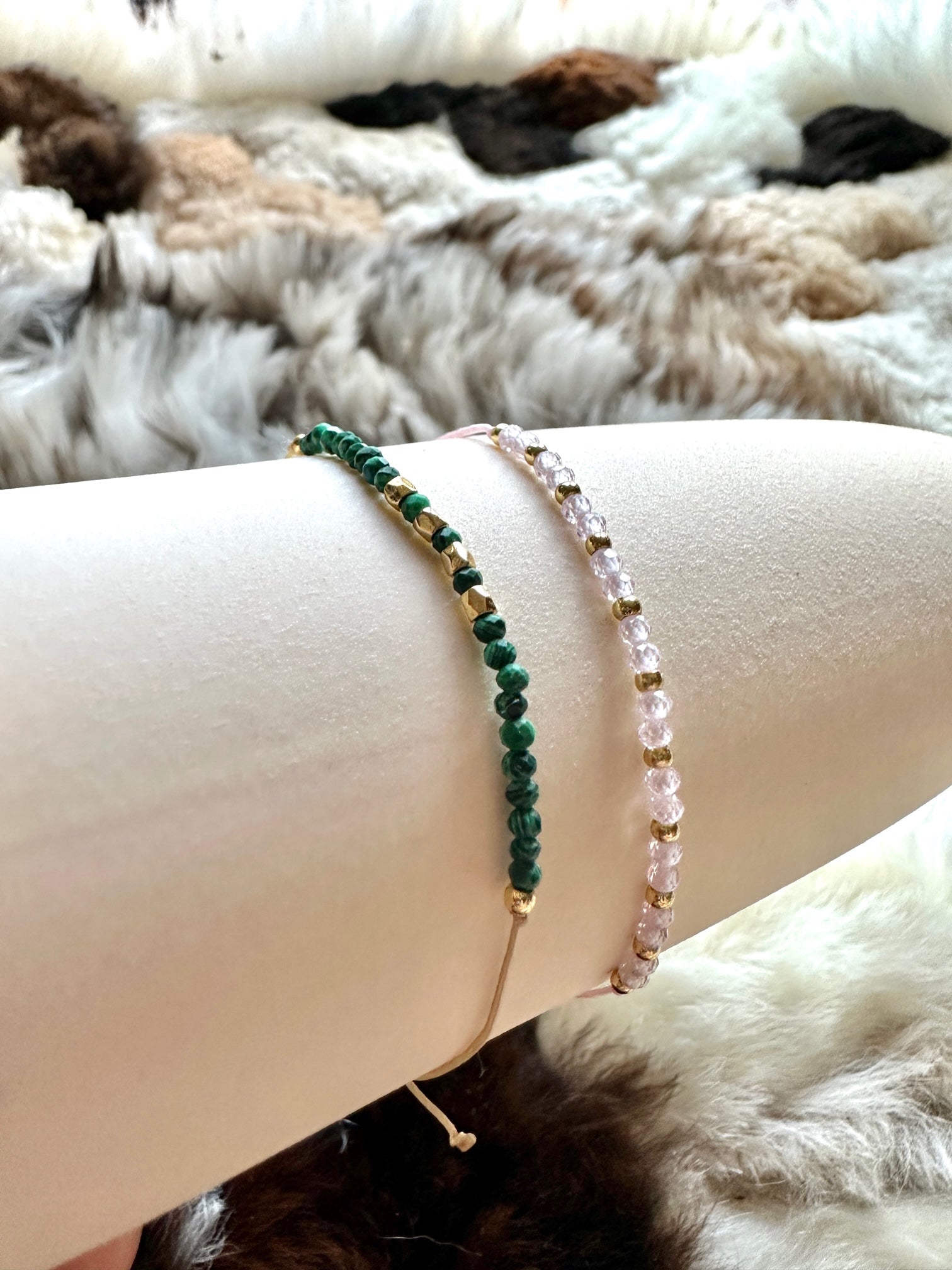 Small faceted pink quartz stone * Category: Rope Bracelet * Material: Rope with 14kGold Filled beads * Size: 2mm adjustable - Lead and Nickel Free.
